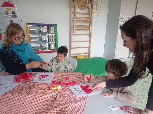 V říjnu jsme si v přípravné třídě užili spoustu zábavy a objevování. Leontýnka si hrála v tělocvičně před zrcadlem se svojí oblíbenou skákací lamou. Willi odpočíval ve snoezelenu u promítaného delfína a poslouchal zvuky bubnů, které má moc rád. Temuge trénoval rovnováhu na barevných kamenech v tělocvičně. Matýsek si zkoušel hrát i bez maminky a krásně to zvládal. Během jablíčkového týdne jsme lepili, stříhali a trénovali práci s lepidlem i grafomotoriku. Povídali jsme si také o podzimním počasí. Na konci měsíce jsme si užili veselé halloweenské tvoření.