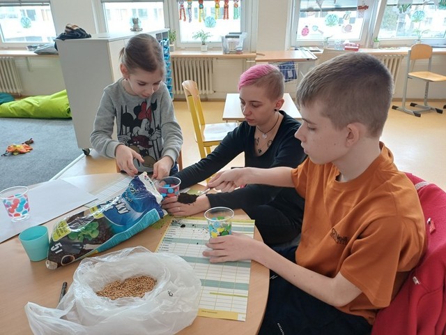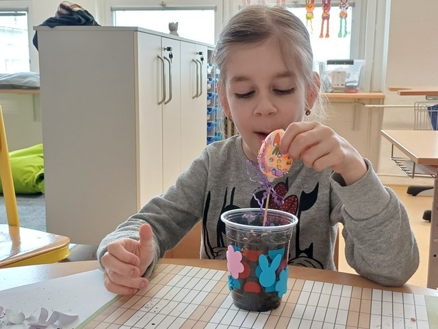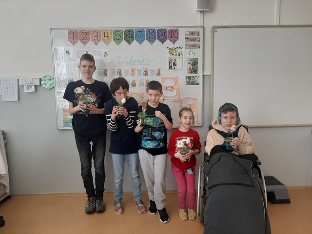 V březnu jsme netrpělivě vyhlíželi první sluneční paprsky a jarní kytičky. Povídali jsme si o nich, malovali je a také je pozorovali během procházek venku. Postupně jsme se začali připravovat na Velikonoce. Zaseli jsme jarní osení, zdobili perníčky a malovali vajíčka. Všichni jsme si užili velikonoční dílničky, při kterých jsme vytvořili krásné dekorace. Nechyběl ani pohyb, s radostí jsme si také zasportovali v tělocvičně. Celé období jsme zakončili veselou koledou a nadílkou od velikonočního zajíčka, která vykouzlila úsměv na tvářích všech dětí.