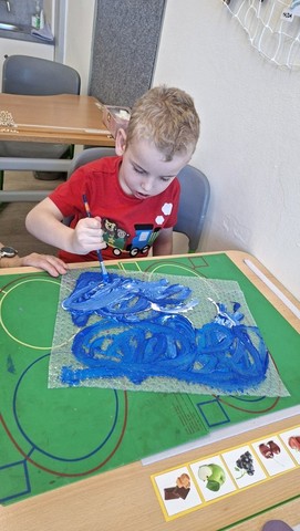 Velkou část našeho času jsme věnovali malování obrázků na krajskou výstavu s tématem „Sport nás spojuje“. Každý z nás vytvořil obrázek po svém a podle svých možností – někdo kreslil oblíbený sport, jiný zachytil spolupráci a radost z pohybu. Vznikly krásné a originální práce, na které jsme velmi pyšní.