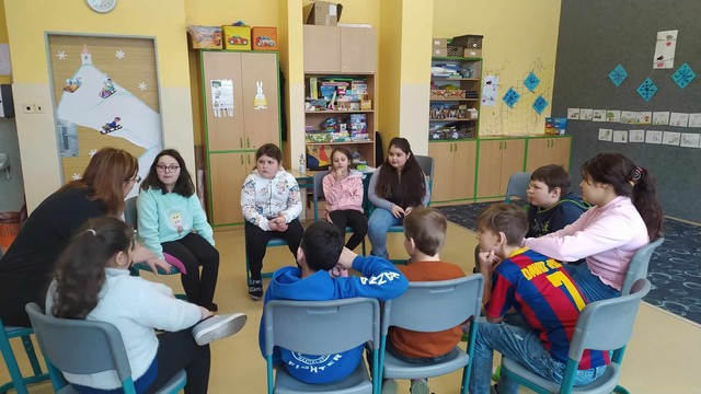 V rámci projektu Den metodika prevence jsme si povídali o šikaně a kyberšikaně. Opět jsme navštívili knihovnu a tam nás čekal příběh o růžovém slůněti. Do třídy k nám zavítala pracovnice z preventivního programu a připravila si pro nás program o osobní hygieně. Největším zážitkem však bylo koupání v Aquacentru. Žáci praktické školy si připravili v tělocvičně loutkové divadlo a my jsme si ho parádně užili. Poslední den v lednu jsme dostali vysvědčení. Pro prvňáčky to bylo jejich první. Nikdo z naší třídy se nemusí stydět, protože známky jsme měli opravdu krásné.