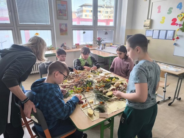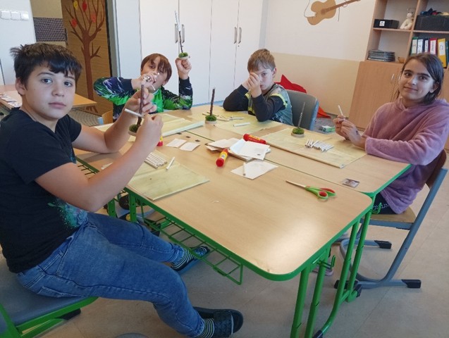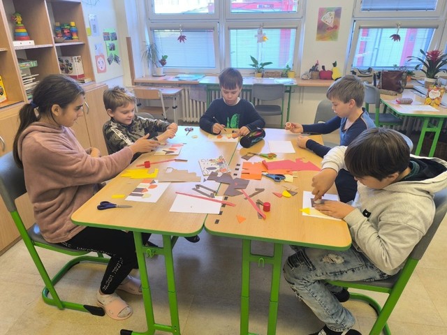 Listopadový měsíc se nesl v duchu tvoření. Podzimní ulice byla postavena a nalepena z barevných papírů. Zapojili jsme se do projektu „Jsem laskavec“ a vytvořili vánoční stromečky pro babičky a dědečky do domova seniorů. V týdnu, který byl celý bramborový se hojně používaly přírodniny, kterými děti dotvářely bramborové strašáky podle své fantazie. A jelikož koncem měsíce listopadu nastává čas adventu, vytvořili jsme adventní věnec na dveře družiny, k jeho dozdobení jsme „upekli“ papírové vánoční perníčky!
