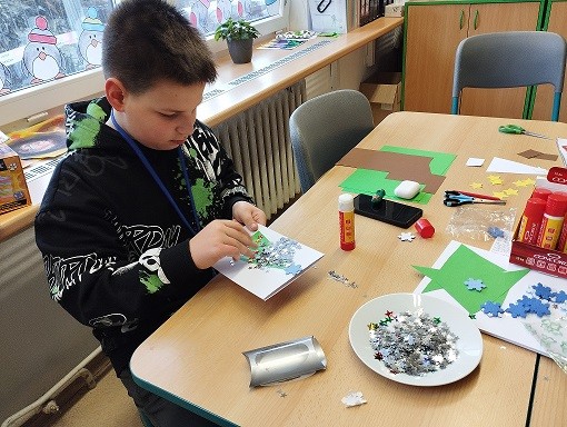 Prosinec ve školní družince byl plný pohádek, příprav i těšení se na Vánoce. V rámci projektového dne „Od adventu do Vánoc“ si děti připomínaly vánoční zvyky, tradice a koledy, vyráběly drobné dárečky, vánoční výzdobu a kreslily svá tajná přání v dopisech pro Ježíška. Při společných vycházkách jsme si prohlíželi vánoční výzdobu našeho města. Návštěva Mikuláše, čerta a anděla, ale i společná vánoční besídka se vydařily. V rámci projektu „Čajování“ si děti připravily cukroví, uvařily čaj a při společném posezení si popřály krásné Vánoce.