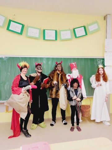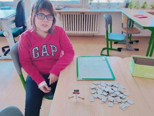 Celý prosinec jsme se všichni těšili na Vánoce. A byl to měsíc protkaný mnoha krásnými akcemi. Při adventním tvoření jsme si vyrobili z břízových koleček adventní věnec na dveře. Papíroví čerti přivítali toho skutečného, který nás přišel navštívit s celou svou družinou. Zazpívali jsme mu písničku. Sportovali jsme s našimi kamarády vysokoškoláky v tělocvičně. Naučili jsme se vánoční koledu, skládali vánoční puzzle. A před vánočními prázdninami jsme si udělali hezkou pohodu s čajem a cukrovím. Bylo nám moc prima!