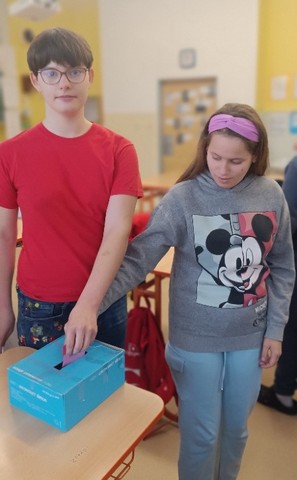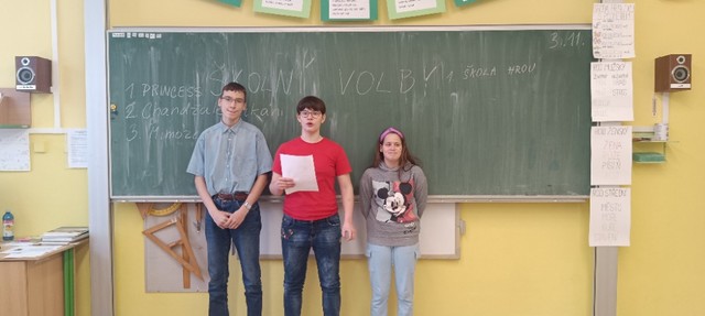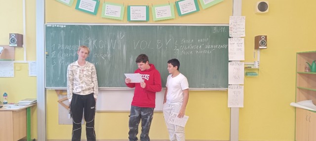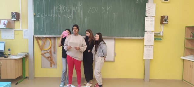 V říjnu proběhl na druhém stupni projektový den věnovaný tématu voleb a politických stran. Nejprve jsme si vysvětlili základní pojmy a poté se rozdělili do skupin. Každá měla vytvořit vlastní stranu s názvem, logem, sloganem a volebním programem na téma Moje vysněná škola. Nechyběly návrhy jako delší přestávky, pohodlnější židle, více sportu. Na závěr proběhla prezentace programů, tajné hlasování a vyhlášení vítězů. Projektový den jsme si všichni moc užili.