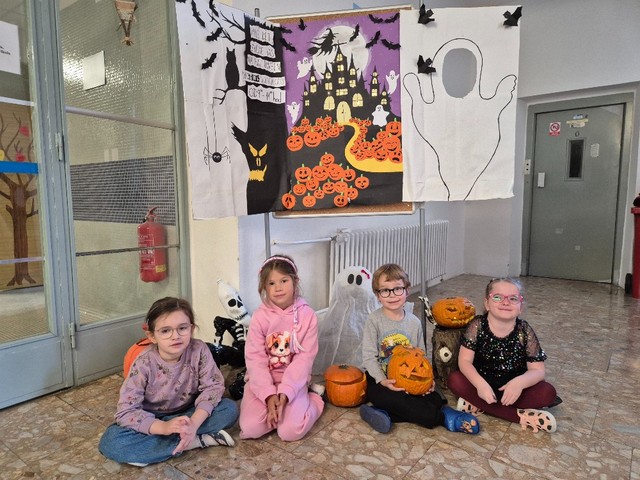 Po podzimních prázdninách nás čekala oslava svátku Halloween. Dlabali jsme dýně a vyráběli strašidelné dekorace, které zdobily vestibul naší školy.