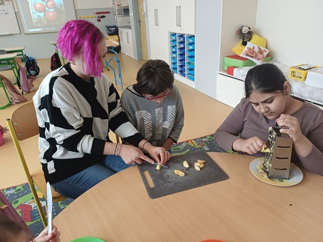 Říjen nám přinesl mnoho krásných a pestrých chvil. Společně jsme si užívali podzimní atmosféru a vůni čerstvě spadaného listí. Vychutnali jsme si Jablíčkový týden, během kterého jsme se seznámili s mnoha odrůdami jablek a objevovali je všemi smysly. Nakonec jsme si jablíčka nakrájeli a připravili z nich tradiční křížaly, které nám budou připomínat podzim ještě dlouho. Navštívili jsme také městský útulek pro zvířata, kde jsme předali dobroty a dozvěděli se mnoho zajímavých informací. Poslední říjnový den jsme věnovali halloweenskému tvoření – vyráběli jsme dekorace a užívali si strašidelnou atmosféru, která ve škole panovala. Těšíme se na další zážitky, které nám podzim ještě nabídne.