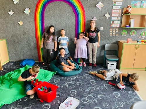 Do oddělení ŠD dochází celkem 9 dětí. – 6 chlapců a 3 dívky. Celoroční hra“ “Rok v přírodě“, nás bude provázet celý školní rok. Bude probíhat formou her, poznávání nových rozvojových aktivit, při kterých si děti osvojí nové dovednosti. Zábavnou formou se děti naučí poznávat přírodu, zvířata, své město a jeho historii, zdokonalí se ve znalostech v oblasti dopravní výchovy, péče o zdraví, kamarádských vztahů. Nejvíce prostoru je věnováno tvoření všeho druhu v podobě omalovánek, vystřihovánek, hádanek, básniček, práce s přírodními materiály. Každý měsíc budou práce dětí následně vyhodnoceny a odměněny. V družince probíhá také hravou formou kolektivní logopedická péče.