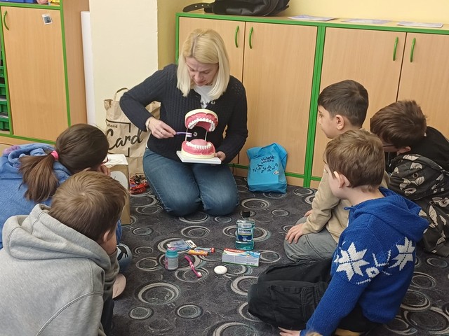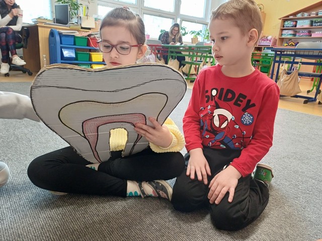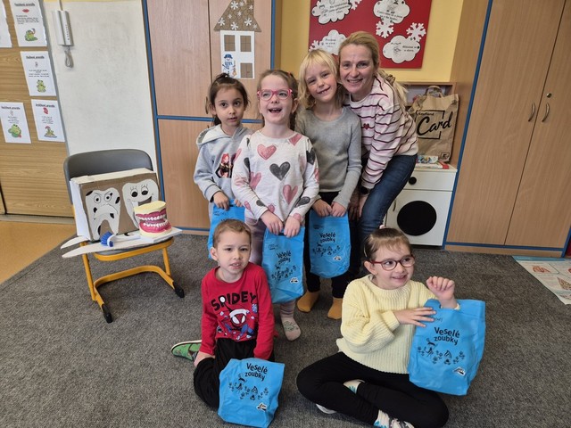 „Zdravé zoubky“ – děti z přípravné třídy Žabičky a žáci ze třídy ZŠ II. se společně učili, jak správně pečovat o své zuby. Zábavnou formou se dozvěděli, proč je důležité pravidelné čištění zubů, jak správně používat zubní kartáček a pastu a které potraviny pomáhají udržet chrup zdravý. Všichni už dobře vědí, že zuby si čistíme alespoň dvakrát denně a že k prevenci zubního kazu patří také pravidelné návštěvy zubního lékaře. Na závěr jsme si společně slíbili, že se o své zuby budeme co nejlépe starat, aby nám zůstaly zdravé a silné po dlouhou dobu.