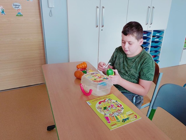 Prázdniny utekly jako voda! Babí léto a slunečné počasí jsme využívali k pobytu venku na školním hřišti. V parku u školy jsme sbírali kaštany, z těch potom vyráběli zvířátka a pavouky. Když nám počasí nepřálo, potěšili nás deskovky a kreslení podzimních obrázků. Hodně legrace bylo u ochutnávání ovoce a zeleniny. Smolíček Pacholíček byl první pohádkou z naší celoroční hry. Z přírodnin jsme vytvořili a zahráli si celý příběh o Jeskyňkách. A najednou je září pryč…těšíme se na další říjnový pohádkový příběh.