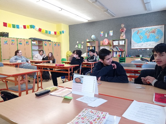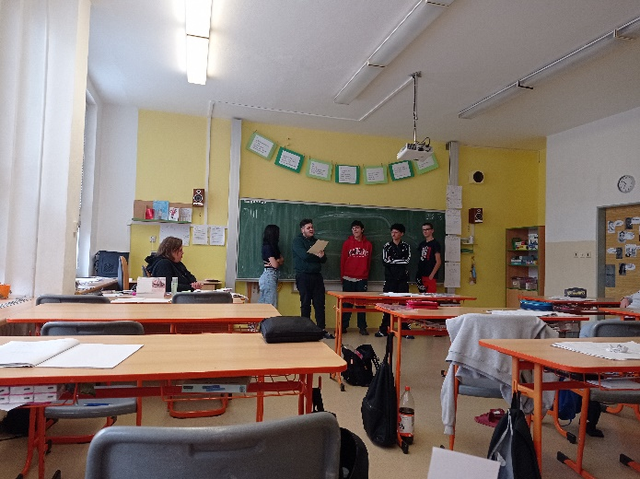 Po vánočních prázdninách jsme se podělili o zážitky ze svátečních dní a poté se hned pustili do učení. Deváťáky v nejbližší době čeká důležité rozhodování o dalším studiu, a proto se někteří žáci zúčastnili dne otevřených dveří na Odborném učilišti profesní přípravy v Hradci Králové. Zapojili jsme se také do projektového dne metodika prevence, který byl zaměřen na emoce a řešení konfliktů. Navštívili nás pracovníci z SKP CENTRA, kteří nám představili Free klub – nízkoprahové zařízení pro děti a mládež. Pololetní vysvědčení jsme společně oslavili krátkým výletem do centra města a drobným občerstvením. Závěrem nás potěšila pochvala pro Káju a Martina, kterým paní ředitelka osobně předala malé dárky a poděkovala za jejich úspěchy a vzornou reprezentaci školy ve stolním tenise.
